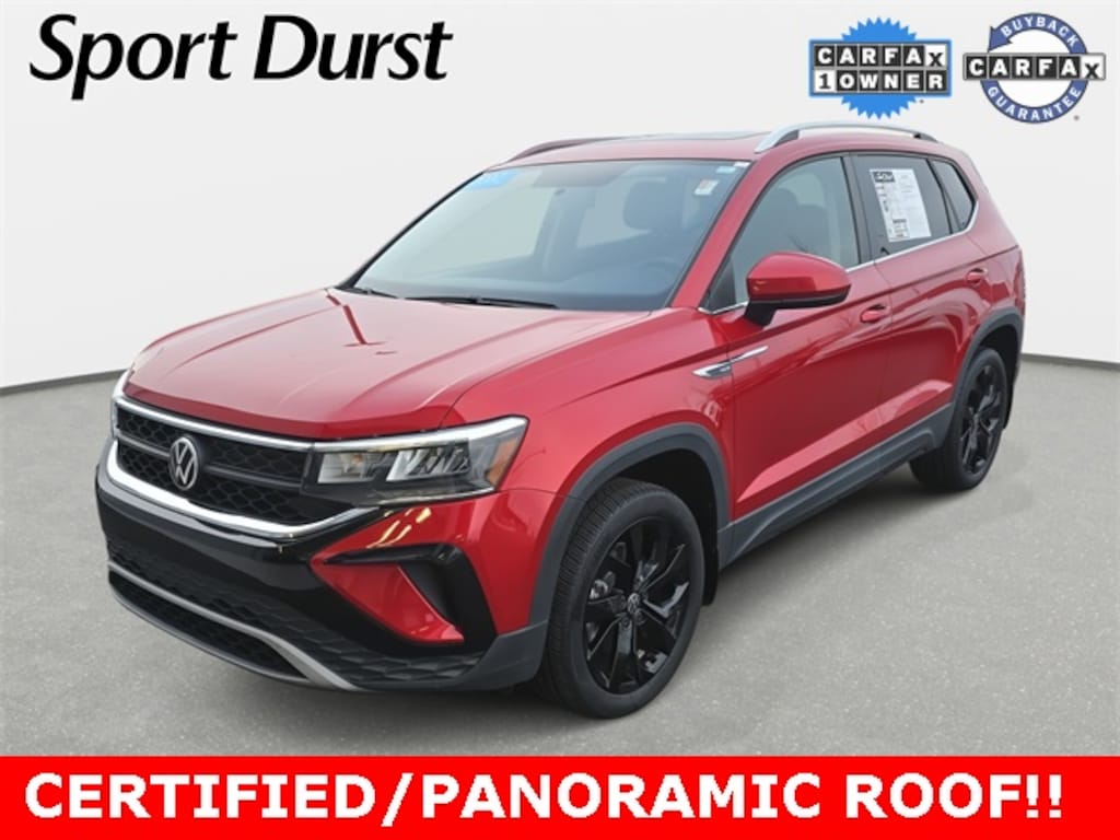 Come See This 2022 Red Volkswagen Taos 1.5T SE FWD and many more at Sport Durst Automotive today!
